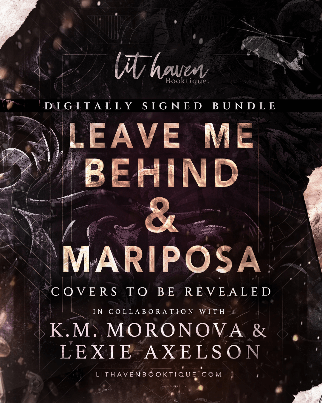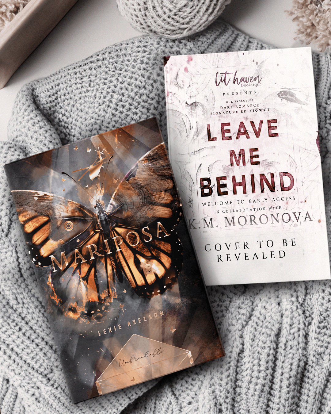 Preorder our Exclusive, hardcover Collector’s Signature Editions of Mariposa by Lexie Axelson & Leave Me Behind by K.M. Moronova.